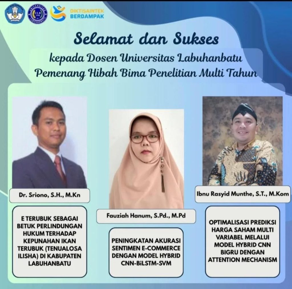 Selamat dan sukses kepada para Dosen Universitas Labuhanbatu yang berhasil meraih pendanaan Penelitian Multitahun yang didanai oleh Kementerian Pendidikan Tinggi, Sains, dan Teknologi (Kemdiktisaintek).
