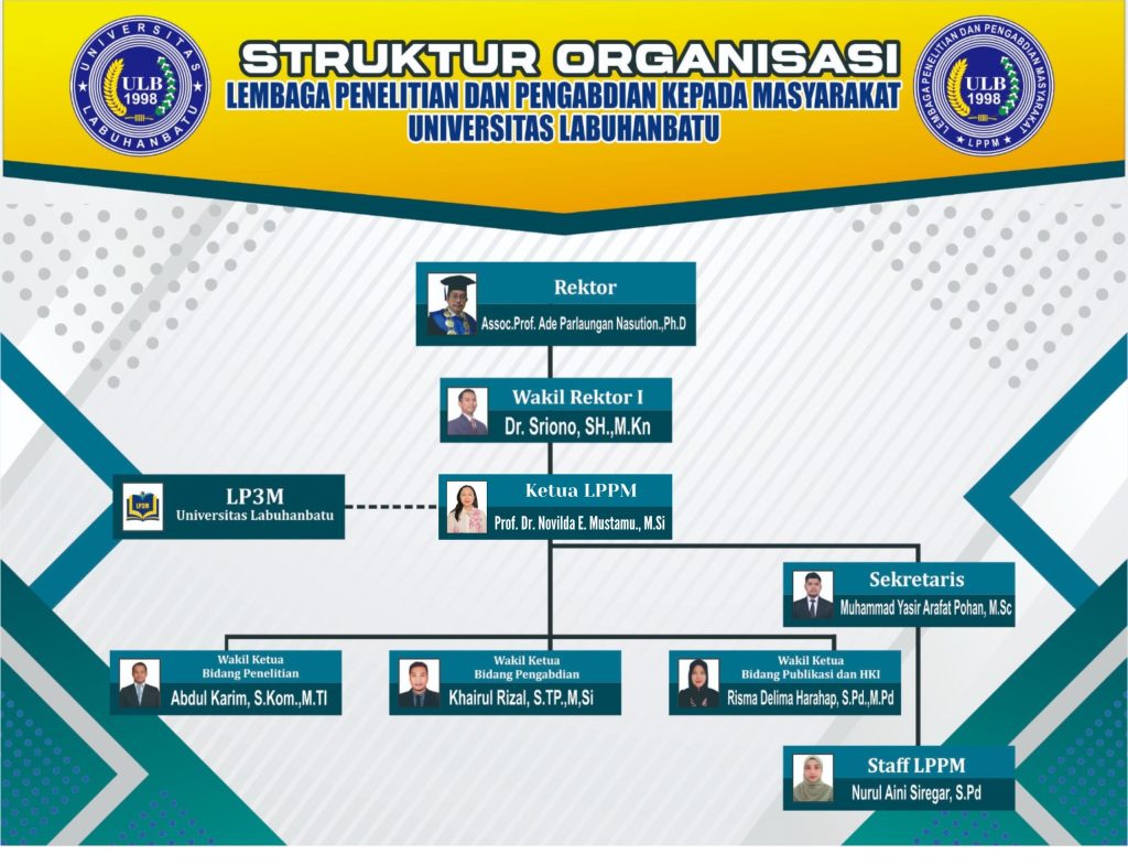Sekretaris: Muhammad Yasir Arafat Pohan, M.Sc, yang mendukung operasional LPPM dan mengelola administrasi serta koordinasi kegiatan dalam lembaga.